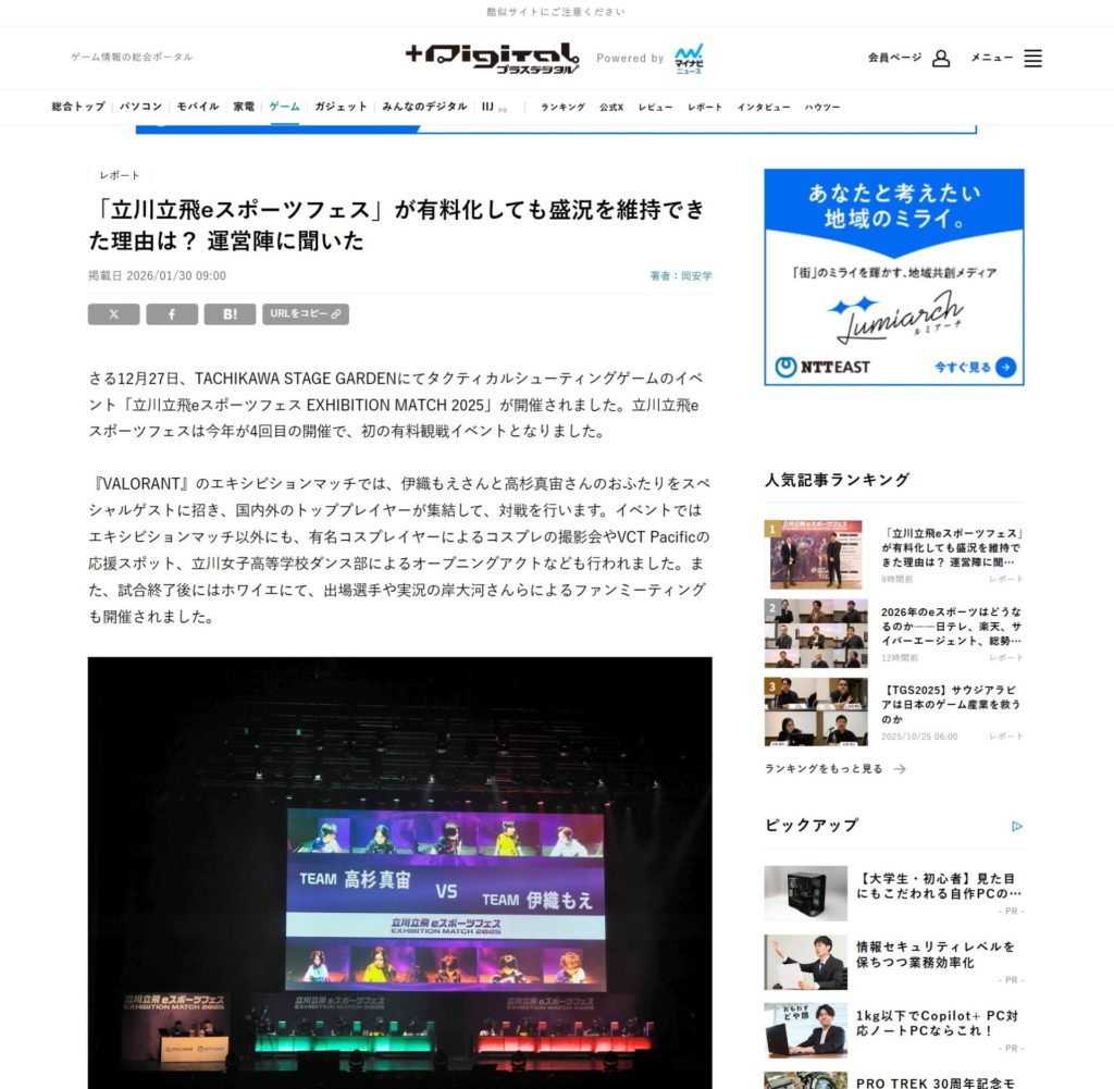 「立川立飛eスポーツフェス」が有料化しても盛況を維持できた理由は? 運営陣に聞いたが、マイナビニュースに掲載されました。