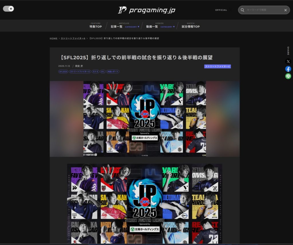 投稿日: 2025年11月13日2025年11月13日 投稿者: digiyas【掲載情報】【SFL2025】折り返しでの前半戦の試合を振り返り&後半戦の展望 【SFL2025】折り返しでの前半戦の試合を振り返り&後半戦の展望が、Progaming.jpに掲載されました。 共有:FacebookXいいね:いいね 読み込み中…